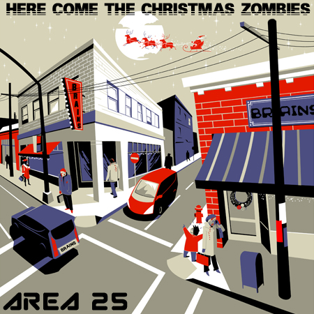 ![]() AREA 25 Here Come the Christmas Zombies Area 25 got their start in the college town of Sparta, Alabama, playing coffeehouse gigs at the Culinary University of Sparta to earn money for utensils. Consisting of Walt Spiegel (lead vocals), Bette Pfeiffer (vocals and keyboards), brother and sister Taffy and Billy Decker (backing vocals and guitars, respectively), and Kev Taylor (drums), the quintet's lineup has never wavered, except for a brief period in 1988 when Billy Decker left the band after a misunderstanding due to a poor phone connection From their first, eponymous album to their brand new Broadway musical ("Shimmy Shimmy Shake!"), Area 25 has kept outer-space-based new wave pop on the front burner. They are longtime Bah & the Humbugs fans, and their rendition of "Here Come the Christmas Zombies" dates back to late-night sets in their college days. They finally put the song onto vinyl in 1989 (on their album "Abducted"), after Billy Decker rejoined them. It was released in seventeen different versions, including a cyan vinyl 12" Arctic-disco EP mix. Currently, Area 25 tours the country on nostalgia tickets along with their contemporaries Brunette, Zod Zod, and Timothy Beta. When they're not on tour, Taffy and Billy Decker also own a cupcake bakery in Sparta, and Walt Spiegel produces Noh theater for children.